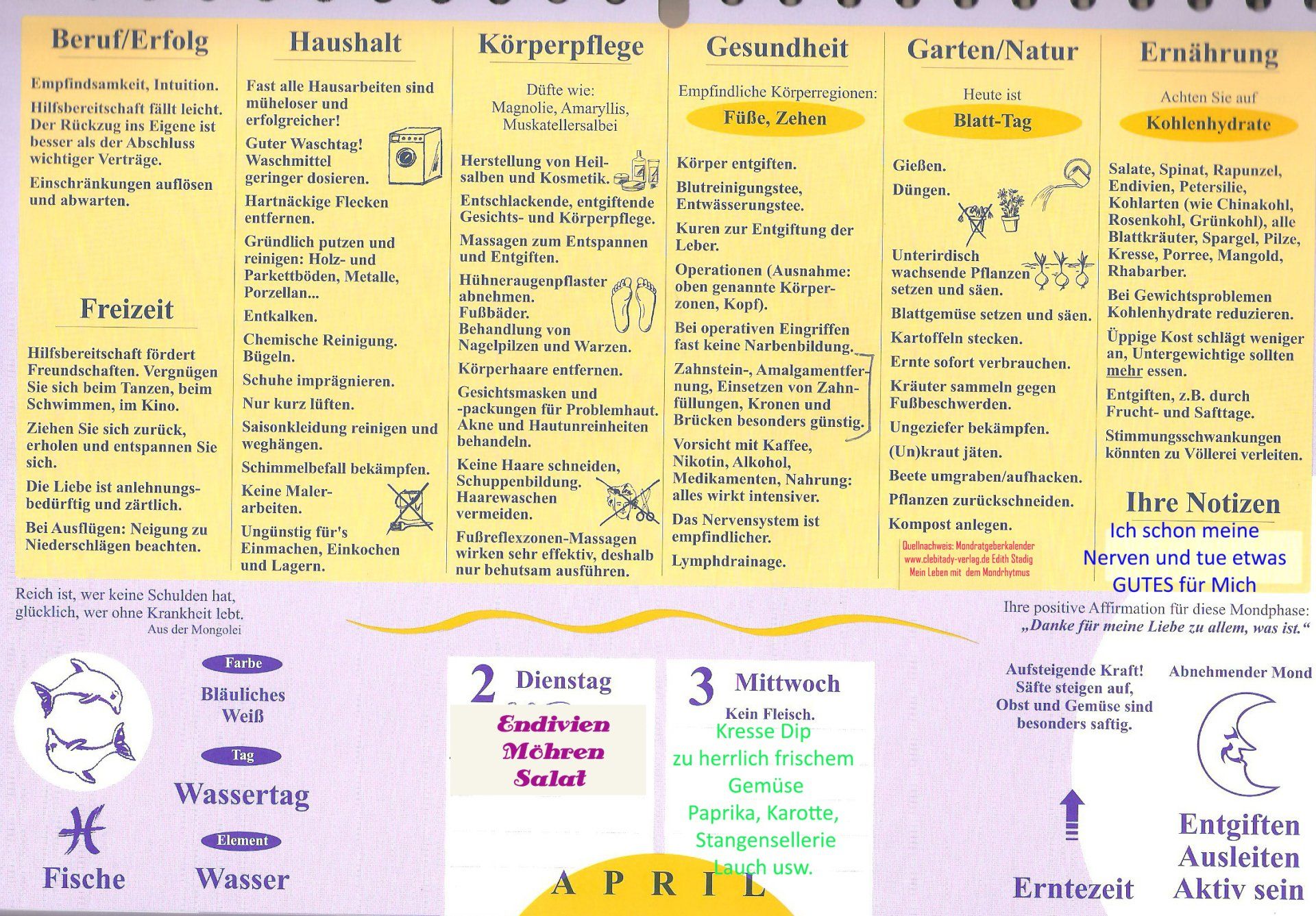 Mondmagie für Montag 02.April Abnehmender Mond in den Fischen