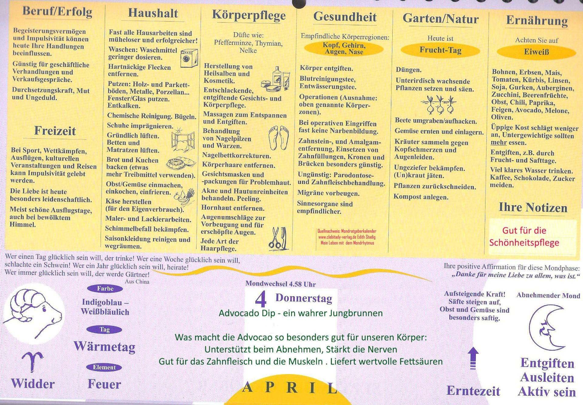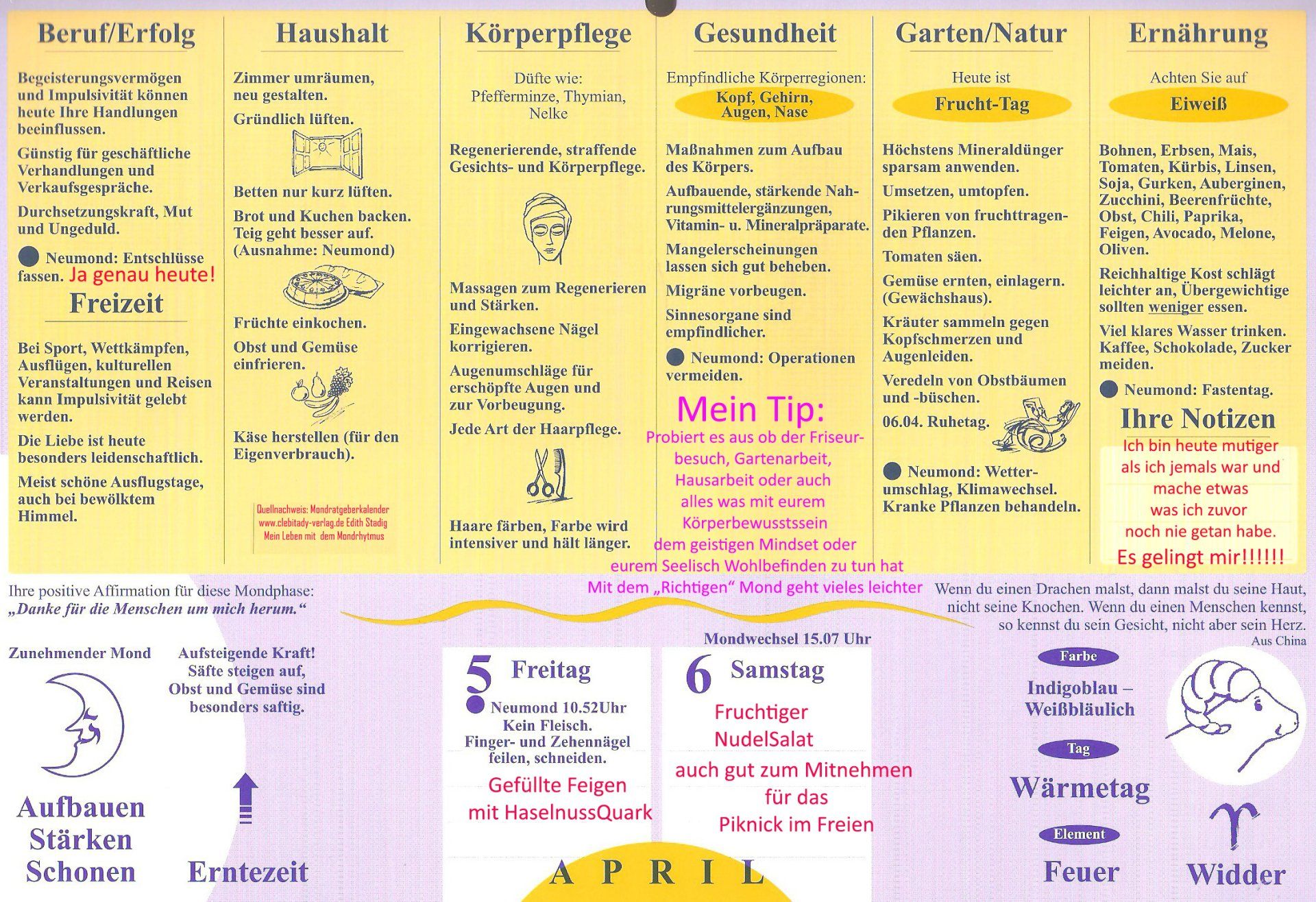 Mondmagie Freitag, 5. April Mond im Widder, abnehmend. Um 10.52 ist Neumond.
