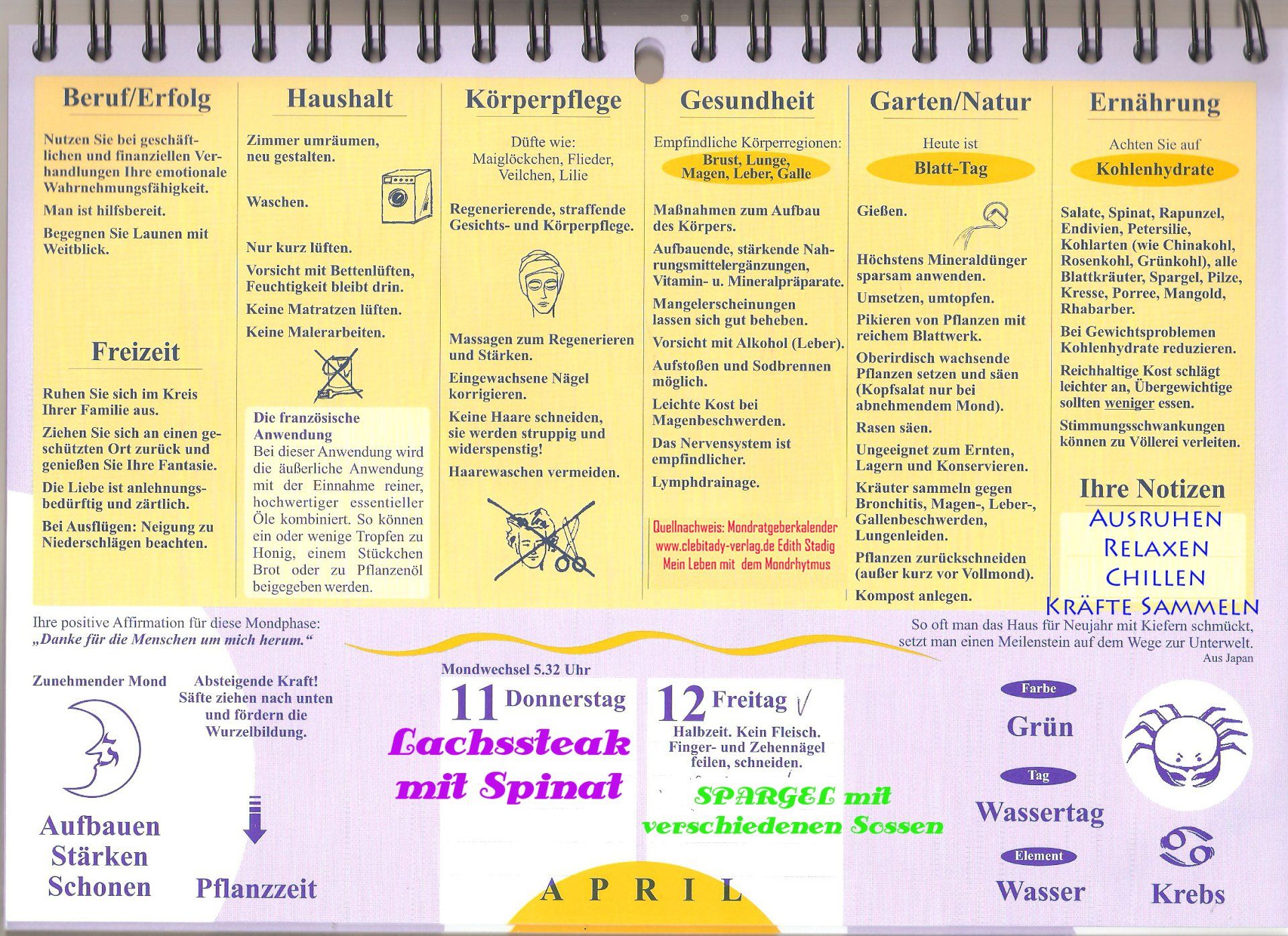 Mondenergie Donnerstag, 11. April Mond im Krebs, zunehmend (Zeicheneintritt um 05.32 Uhr).