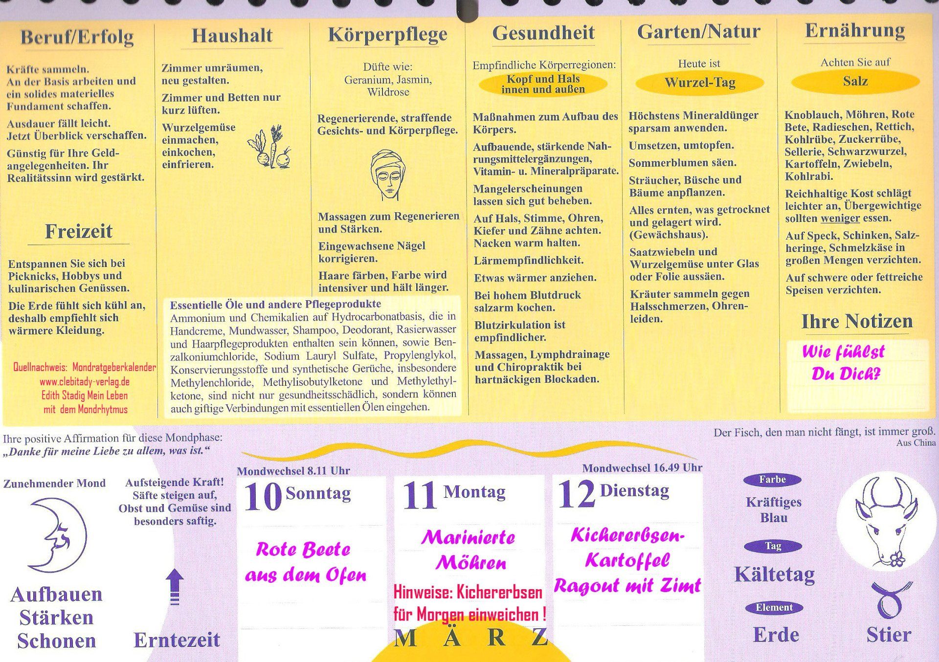 Mondmagie für den 11.März 2019 der Mond wandert in den Stier